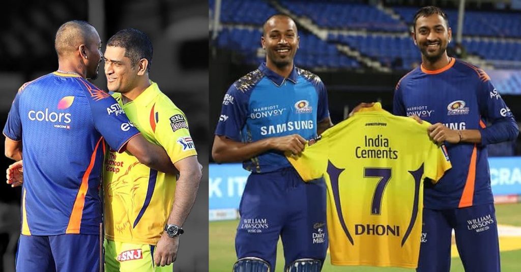 ઈન્ડિયન પ્રીમિયર લીગના સત્તાવાર ટ્વિટર હેન્ડલ પરથી હાર્દિક પંડ્યા અને કૃણાલ પંડ્યાની આ ભેટની તસવીર શેર કરવામાં આવી છે. ખરેખર, મેચ પછી ધોનીએ તેની સીએસકેની જર્સી પંડ્યા બ્રધર્સને ભેટ તરીકે આપી છે.