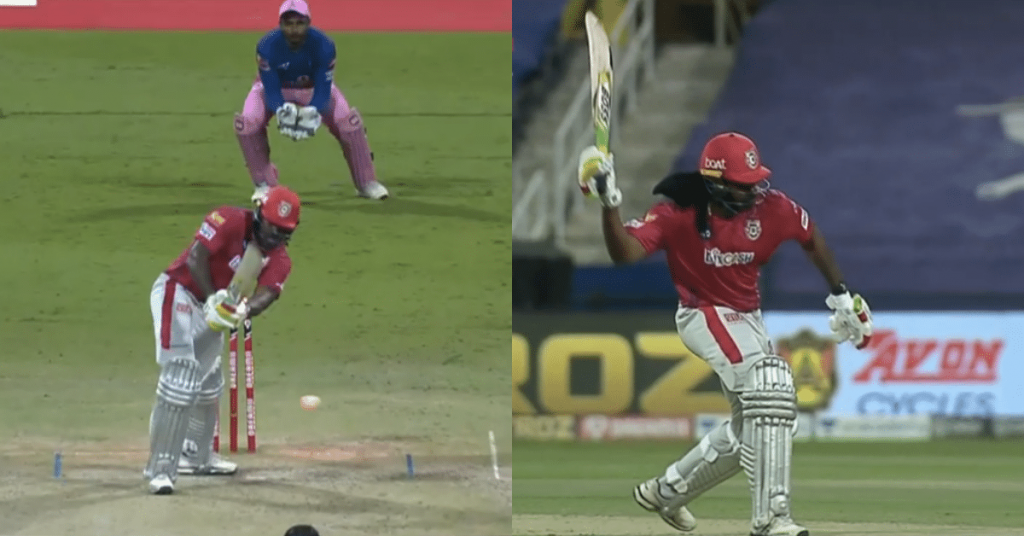 રાજસ્થાન રોયલ્સના ફાસ્ટ બોલર જોફ્રા આર્ચેરે ગેલને 99 રન આપીને ક્લીન બોલિંગ આપી હતી. લીગમાં તેની 7 મી સદી ગુમાવ્યા બાદ, ગેલ નારાજ હતો અને ગુસ્સે થઈને તેણે બેટને મધ્ય ગ્રાઉન્ડમાં ફેંકી દીધો હતો. આ માટે તે દોષી સાબિત થયો હતો. તે આઈપીએલ આચારસંહિતાની કલમ 1 નું ઉલ્લંઘન કરવા બદલ દોષી સાબિત થયો હતો અને મેચ રેફરી દ્વારા જાહેર કરાયેલ સજાને સ્વીકારી હતી.
