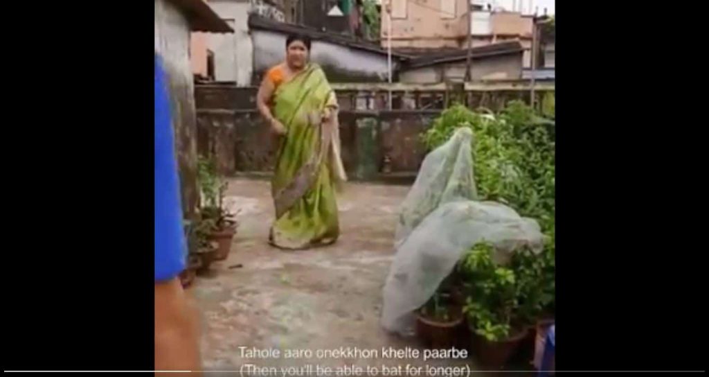 આ વીડિયોનું કેપ્શન છે, ‘આ 58 વર્ષીય માતાના શોટને રેટ કરો.’ આ વીડિયોમાં, તેની આસપાસ ઉભેલા લોકોને બંગાળીમાં કંઇક બોલતા સાંભળવામાં આવી શકે છે. પ્રથમ બોલ પર, મહિલા બચાવ કરતી નજરે પડે છે, જ્યારે બીજા બોલ પર તે બહાર નીકળી જાય છે અને બોલને બોલરના માથા ઉપર એક ફોર માટે મોકલે છે.