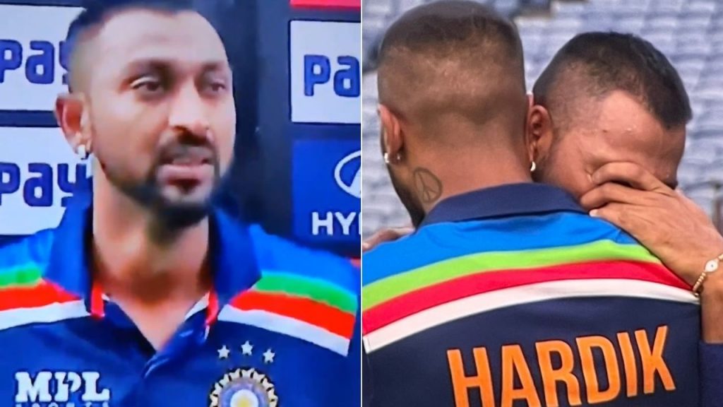 કૃણાલનો આ ઇન્ટરવ્યૂ વચ્ચે જ બંધ કરવો પડ્યો, કારણ કે તે વાત કરવાની સ્થિતિમાં દેખાતો ન હતો. આ પછી હાર્દિક પંડ્યા પાસે આવ્યો અને ભાઈ કૃણાલને ગળે લગાવી દીધો. ડેબ્યુ કેપ મેળવ્યા બાદ, કૃણાલે પ્રથમ પોતાની કેપ આકાશ તરફ બતાવી અને પચાસ બનાવ્યા બાદ બેટ પણ પ્રથમ વખત આકાશ બતાવ્યું.