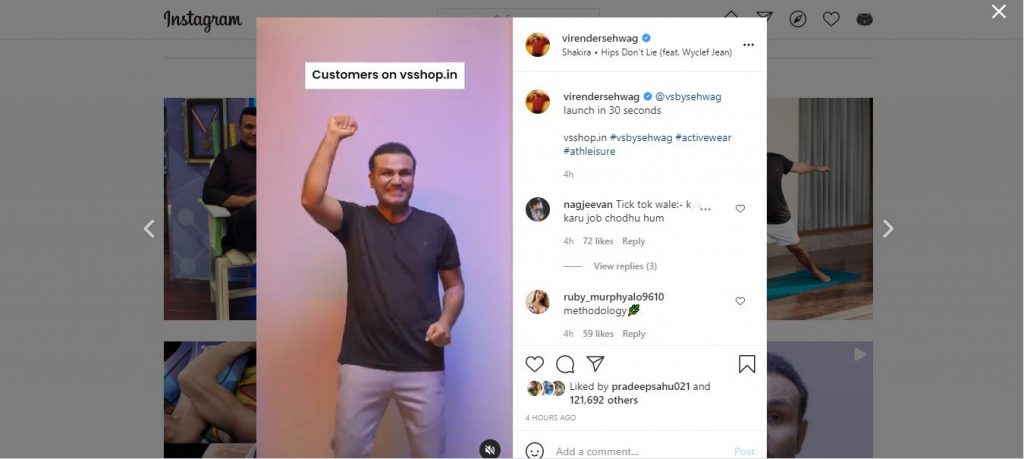શનિવારે વીરેન્દ્ર સહેવાગે સોશિયલ મીડિયા પર પોતાનો એક વીડિયો શેર કર્યો હતો. માર્ગ દ્વારા, આ વીડિયો સહેવાગના નવા સાહસ એટલે કે સ્પોર્ટસવેર vsshop.in માટે શેર કરવામાં આવ્યો છે. સેહવાગે તેના પ્રમોશન માટે જે વીડિયો શેર કર્યો હતો તે જોઈને ચાહકો સ્તબ્ધ થઈ ગયા હતા. વાસ્તવમાં, આ વીડિયોમાં, સેહવાગ તેના કમ્ફર્ટ ઝોનની બહાર ડાન્સ કરતો અને તેની બ્રાન્ડ વિશે જણાવતો જોવા મળે છે. તેનો આ વીડિયો સોશિયલ મીડિયા પર ભારે વાયરલ થયો હતો.