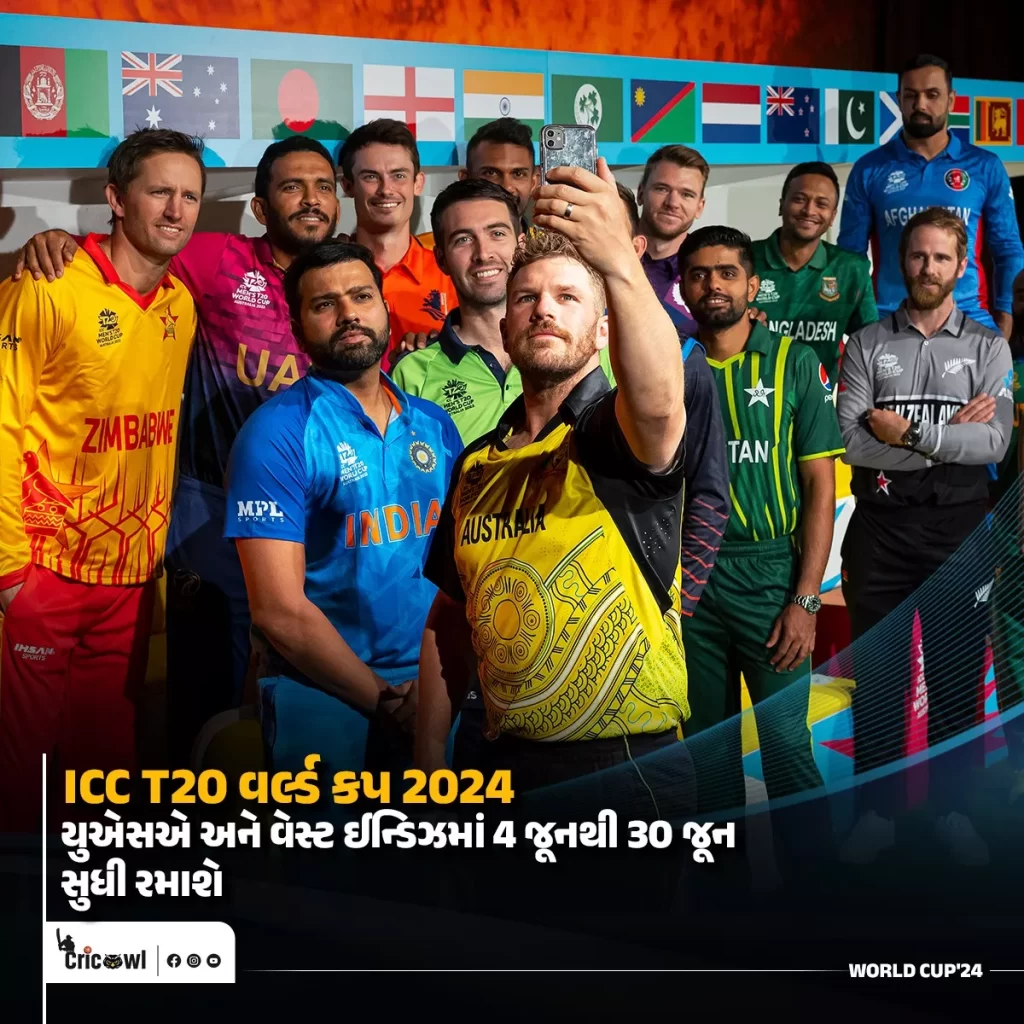 ICC T20 ક્રિકેટ વર્લ્ડ કપ 2024 નું આયોજન વેસ્ટ ઈન્ડિઝ અને અમેરિકાની ધરતી પર થવાનું છે. ICC પહેલીવાર અમેરિકાની ધરતી પર કોઈ ટૂર્નામેન્ટનું આયોજન કરવા જઈ રહ્યું છે. આ દરમિયાન ટી20 વર્લ્ડ કપ 2024ની તારીખ પણ સામે આવી ગઈ છે.