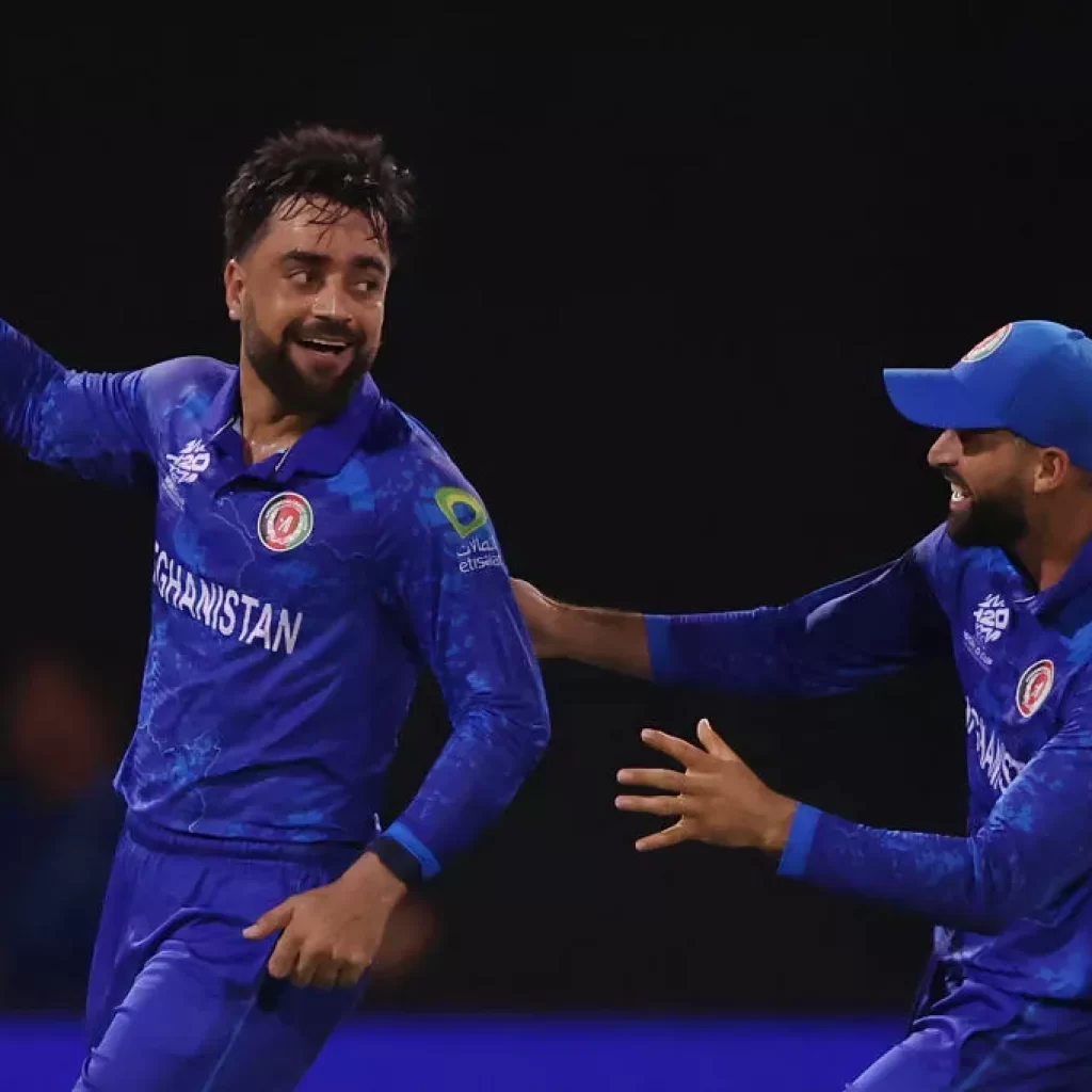 રાશિદ ખાનની શાનદાર બોલિંગના કારણે અફઘાનિસ્તાનની ટીમ ન્યૂઝીલેન્ડને 84 રનના વિશાળ અંતરથી હરાવવામાં સફળ રહી હતી. આ દરમિયાન તેણે 4 વિકેટ ઝડપી હતી. આ સાથે રાશિદ ખાન T20 વર્લ્ડ કપમાં 4 વિકેટ લેનારો ત્રીજો કેપ્ટન બની ગયો છે. આ પહેલા માત્ર ન્યૂઝીલેન્ડના કેપ્ટન ડેનિયલ વેટોરી અને ઓમાનના કેપ્ટન જીશાન મકસૂદ જ આ સિદ્ધિ મેળવી શક્યા હતા.