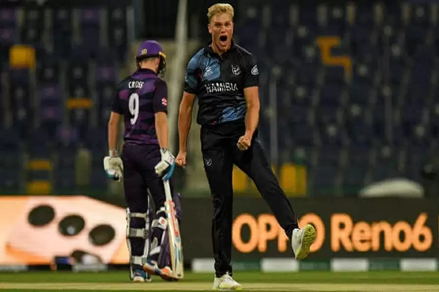 નામિબિયાના કેપ્ટને સ્કોટલેન્ડ સામે ટોસ જીતીને બોલિંગ કરવાનો નિર્ણય લીધો હતો. બોલિંગ કરવા માટે પ્રથમ ઓવર લેતા, રુબેન ટ્રમ્પમેને કંઈક એવું કર્યું જે ટી-20 ઇન્ટરનેશનલમાં પહેલાં ક્યારેય બન્યું ન હતું. 23 વર્ષીય બોલરે એક ઓવરમાં ત્રણ વિકેટ ઝડપી હતી. તેની શાનદાર બોલિંગનું પરિણામ એ આવ્યું કે સ્કોટલેન્ડ શરૂઆતના મારામારીમાંથી બહાર નીકળી શક્યું નહીં. સ્કોટલેન્ડે 20 ઓવરમાં 8 વિકેટ ગુમાવીને 109 રન બનાવ્યા હતા. જવાબમાં નામિબિયાએ 19.1 ઓવરમાં 6 વિકેટ ગુમાવીને લક્ષ્ય હાંસલ કરી લીધું હતું.