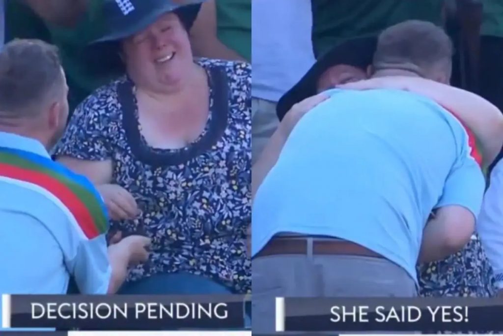 ઇંગ્લેન્ડ અને પાકિસ્તાન વચ્ચે રમાયેલી ત્રીજી વનડે મેચમાં એક વ્યક્તિએ સ્ટેન્ડમાં બેઠેલી એક મહિલા પ્રત્યે પોતાનો પ્રેમ વ્યક્ત કર્યો અને હૃદયની વાત કરી. ખરેખર એક પુરુષે એક ઇંગ્લિશ મહિલાને જીવંત મેચ દરમિયાન તેની સામે દરખાસ્ત કરી. માણસે રિંગ વડે યુવતીને પ્રપોઝ કરી. આ જોઈને છોકરી ભાવુક થઈ ગઈ અને તેણે રડતા છોકરાને હા પાડી.