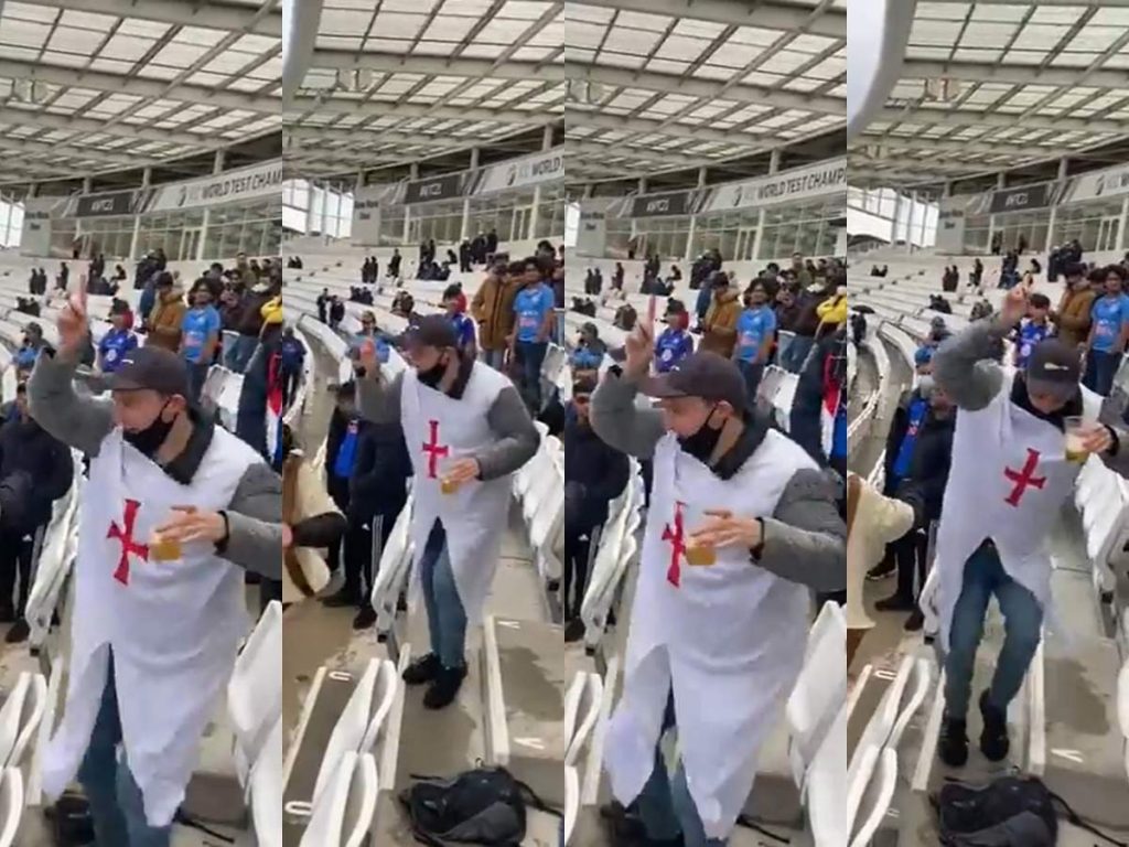આ મેચ જોવા માટે ઘણા ભારતીય ચાહકો એજીસ બાઉલ મેદાન પર પહોંચ્યા છે. તેઓ ભારતને ઉગ્રતાથી પ્રસન્ન કરી રહ્યા છે. સોમવારે સ્ટેડિયમમાં એક અનોખો નજારો જોવા મળ્યો હતો. ટીમ ઇન્ડિયાના ચાહકો ત્રિરંગો, ક્રિકેટ જર્સી અને ઢોલ લઈને સ્ટેડિયમ પહોંચી રહ્યા છે. આ દરમિયાન બે અંગ્રેજી લોકો પણ ભારતીય શિબિરમાં આવ્યા હતા. બંનેએ પંજાબી ઢોલની બીટ પર જોરદાર ભાંગરો કર્યો હતો. લોકો સોશિયલ મીડિયા પર આ વીડિયોને જોરદાર શેર કરી રહ્યાં છે અને સોશિયલ મીડિયામાં તે એકદમ વાયરલ થઈ રહ્યો છે.