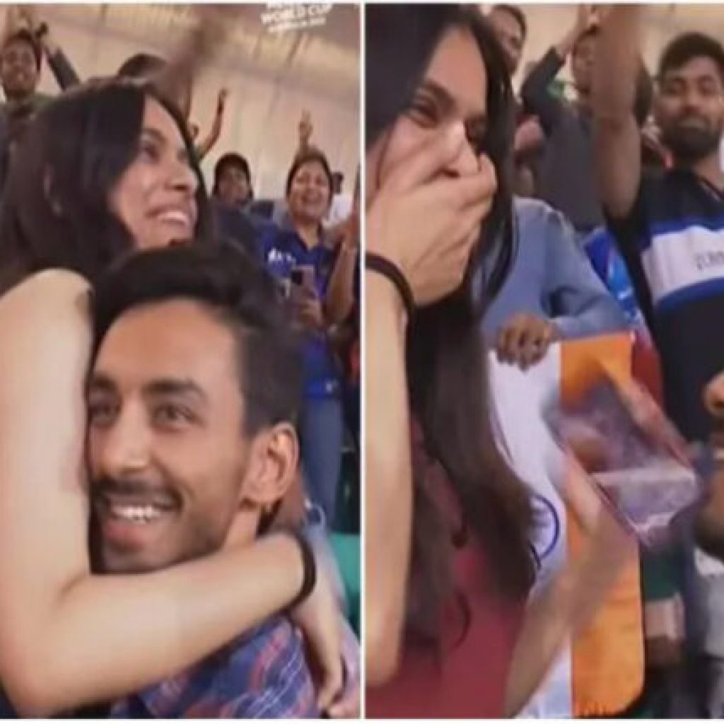 મેચ દરમિયાન એક વ્યક્તિએ ભારે ભીડ અને ઘણા કેમેરાની સામે તેની ગર્લફ્રેન્ડને પ્રપોઝ કર્યું. તેનો વીડિયો સોશિયલ મીડિયા પર જોરદાર વાયરલ થઈ રહ્યો છે.