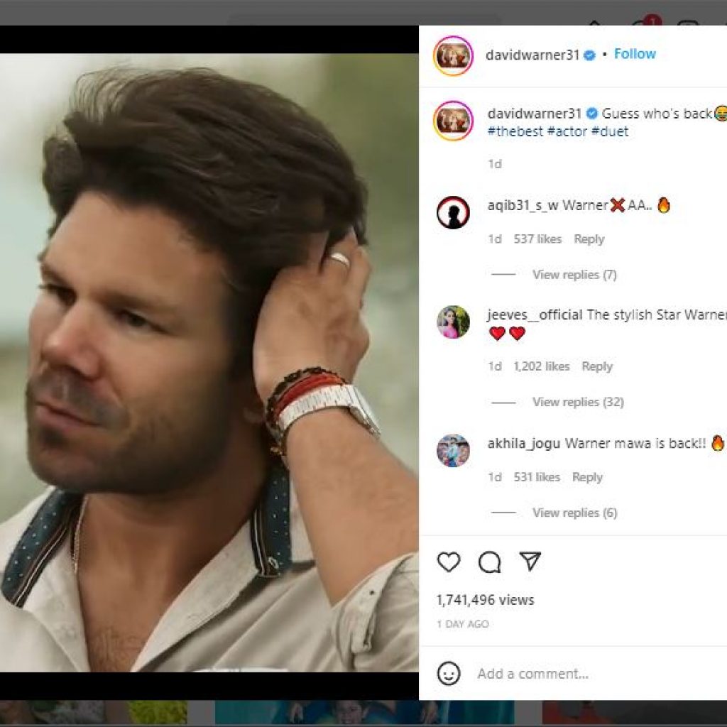 ઓસ્ટ્રેલિયાનો ખતરનાક ઓપનર ડેવિડ વોર્નર ટોલિવુડ સુપરસ્ટાર અલ્લુ અર્જુનનો જોરદાર ચાહક લાગે છે. પુષ્પા ફિલ્મના કેટલા વીડિયો તેણે ઈન્સ્ટાગ્રામ પર શેર કર્યા છે. જોકે તેણે અલ્લુ અર્જુનની બીજી ફિલ્મ પર એક નવો વીડિયો બનાવ્યો છે, જે ચાહકોને ખૂબ જ પસંદ આવી રહ્યો છે.